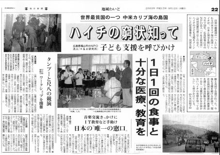 2003年8月12日 毎日新聞社掲載記事 ハイチの窮状を知って