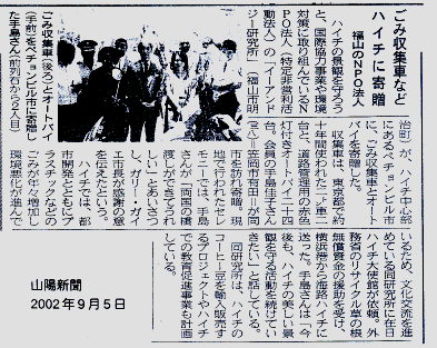 | 2001年度事業のごみ収集車2台とバイク24台をハイチに贈る事業が完了。
