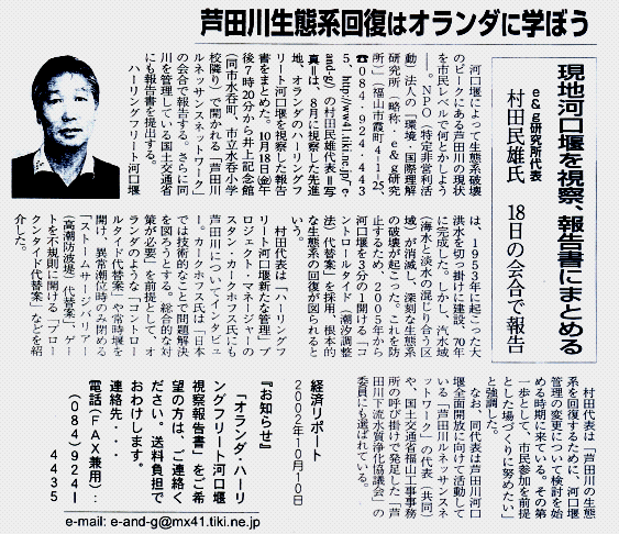経済リポート(備後地域の経済情報誌)2002年10月10日 掲載 |