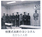 | 「ろうきんNPO寄付システム」から、実績が評価され5万円をいただきました。11月2日広島市で行われた授与式に、ヨシコさんが出席しました。評価を受けた点は、「自然エネルギーとバイオマスの調査研究を熱心に取り組んでいる」ことと、「特に、ハイチ共和国への支援事業には国際性がある」との2点でした。なお、評価基準としては、公共性、自発性、意欲、実績、目的、計画性、将来性などです。