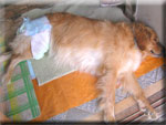| 08.12.5 6ヶ月半になり身体も大きくなったので、この日、H犬猫病院にて、去勢手術を受けました。手術前のマー君です。 去勢に対して賛否両論ありますが、我が家の事情から言って、去勢をして置いた方がいい、という結論に達しました。 ワンちゃんを連れて来られる方も増えてきましたので、もしヒート中のワンちゃんに、過ちを犯してもいけないし、気性も少し大人しくなるようなので、お客様にも優しくなれていいのではと思います。 術後の経過も順調のようでよかったです。 12時間以上もおしっこをしないので、心配して獣医さんに電話したら、心配ないですよ、術後はあまり出ませんから。 とのこと、安心しました。 3日たった今日も、ほとんど横になっていて、オシッコは1日2回、便も1回出ているので大丈夫と思います。 フードも普通に食べますし、ただ歩くと傷口が気になるんでしょう2〜3歩歩いては座り込みます。あと、傷口を良く舐めます。 10・23の5ヶ月のときに、体重が21kgだったのにあれから40日も足ったのにこの日量ってみたら、ほとんど増えてなかった、体重が止まるとは聞いていたけどね、毎日食べたものはどこへ行ったんでしょう。 |