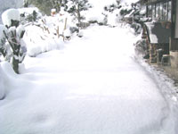 05.2.1 2005年,2月1日、2日の大雪ですっぽりと覆われてしまった芝、約30cmの積雪でした。芝の上は雪かきをしないでそままです。雪の下は以外と暖かいそうで、芝にとってもその方がいいそうです。また雪かきで芝を傷めてもいけないし。 雪が降ると山から色んな小鳥が降りてきて庭木の実とか虫や新芽を盛んについばんでいる光景が好きです。 |