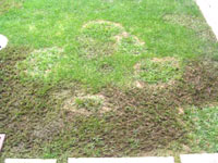 04.10.5 ただ一部分の「ひめの」が40〜50cm円形に枯れてしまい、原因がよくわからないまま、殺菌剤や殺虫剤を使ってみたりしています。 本によれば「ゾウの足跡病」に一番近く施肥不足で起こりやすいようですが、素人には見てもよくわからないところがあります。 |