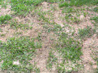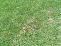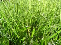 ''07/10/9 種まきをしてから2週間弱の、ドアップの写真です。 早いものでペレの方は50mmくらいになったので、早速、刈高30mmに刈りました。 そしてブルーグラスのほうも、そろそろ芽を出す頃ではないかと思います。 そうすると一段と青くなることでしょう。 |