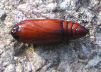 | わが家の芝を食い荒らしてくれたスジキリヨトウ別名シバヨトウです。9月30日に見つけたものです。 左上の成虫は、体長13mm前後で夜間交尾のため出てきて卵を産みます。右上の卵は6〜7mmで一つの卵の中に少ないもので50粒、多いもので150粒も卵が入っているそうです。こんな卵があっちこっちにあるのをみると、ゾッとします。 左下の幼虫は、大きいもので25mm位になるそうです。この腹ぺこ青虫にかかるとアッという間に真ん中下のようになります。 右下の蛹は、7日で成虫になるそうです。薬は青虫にしか効かなくて、オルトラン顆粒を一面にまき被害は最小限にとどめることが出来ました。青虫は越冬するそうです、怖いですね。 |