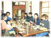 | 築150年の民家を3年かけて素人が、こつこつ自分たちの手で再生してきましたのでとても愛着があります。暑い暑い、夏に5ヶ月かかってやっとテラスが出来、お店らしくなり2000年12月にopenできました。その間、友人、知人の知恵と力を借り本当に助かりました。段取りの悪さや、無知故の失敗は数えるとキリがありませんが、今思うと充実した日々を送っていたように思います。(今も充実してますけど)まだまだ、手直しをしなければいけない箇所があり、楽しい限りです。 |