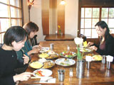 | 食事の後は、テラスにてお茶でおくつろぎください。もちろん、お食事をされても結構です。美味しい空気と、美味しい井戸水、BGMは風の音と、小鳥のさえずりでおもてなしいたします。 |